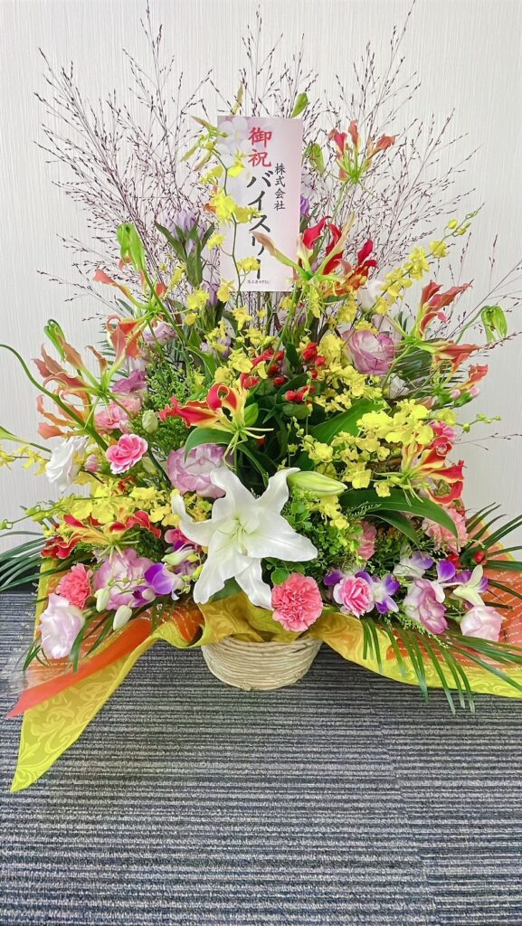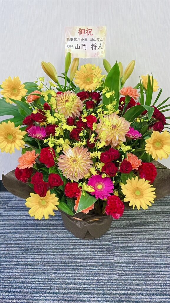 フラワーアレンジメントを頂戴しました!! 2025.10.02 本社のリフォームが完了し、株式会社バイスリー様ならびに鳥取信用金庫湖山支店様より、華やかなフラワーアレンジメントを頂戴しました。おかげさまで、オフィスが一気に明るく華やぎました。🌺